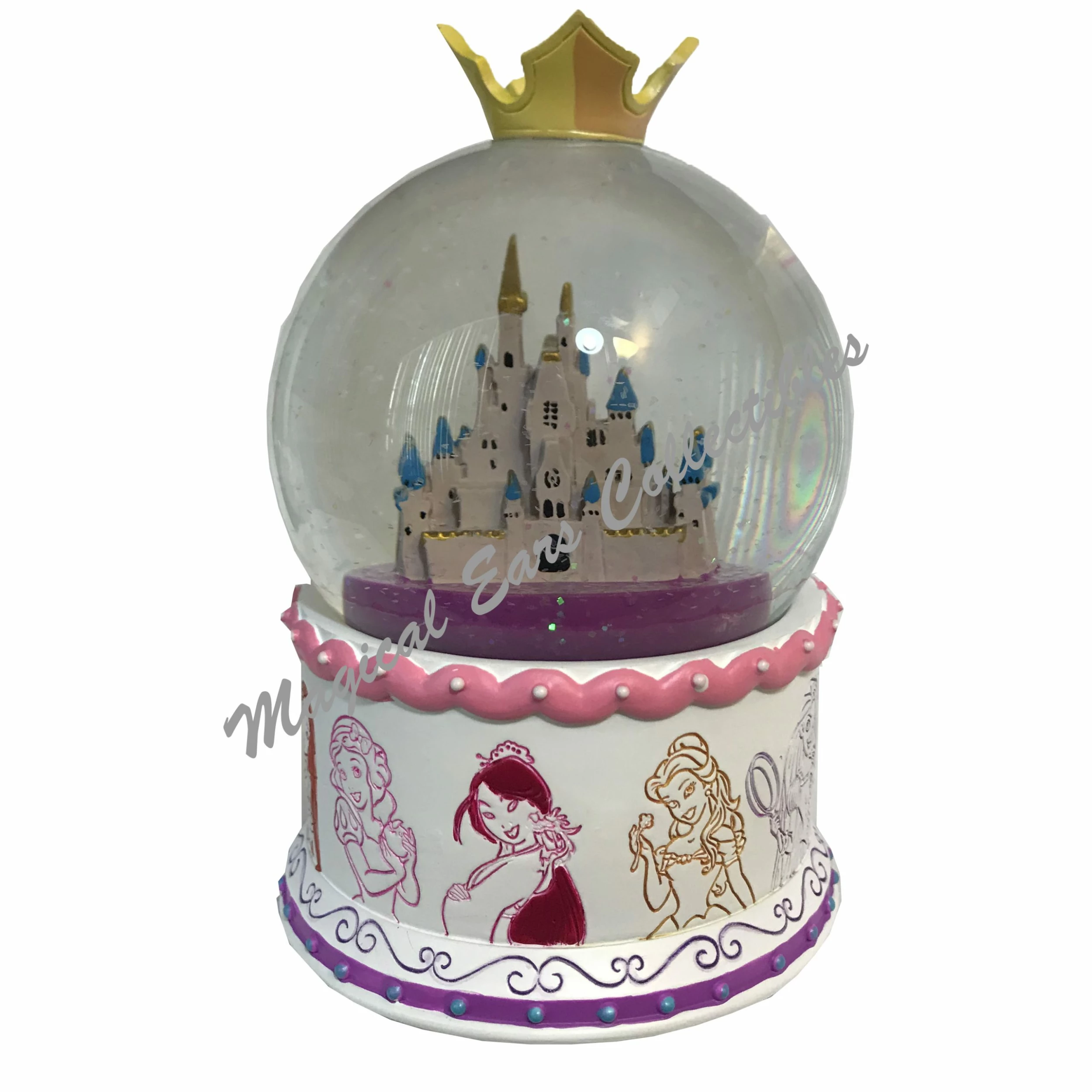 - Fully sclulpted Cinderella Castle inside glass globe