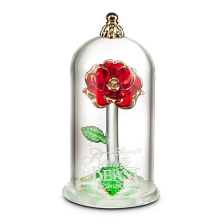 - Glass dome with frosted Beauty and the Beast logo and jeweled topper