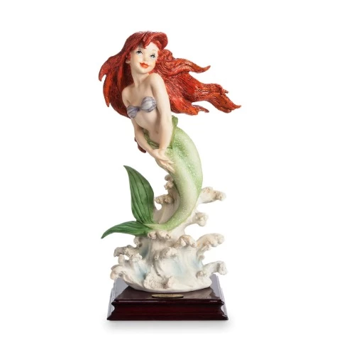 Designed in Italy by Giuseppe Armani and presented by Arribas Brothers, this delicate, beautifully detailed porcelain figure on wood base captures the spirited innocence of the little mermaid princess, Ariel, soon to part of your world.
