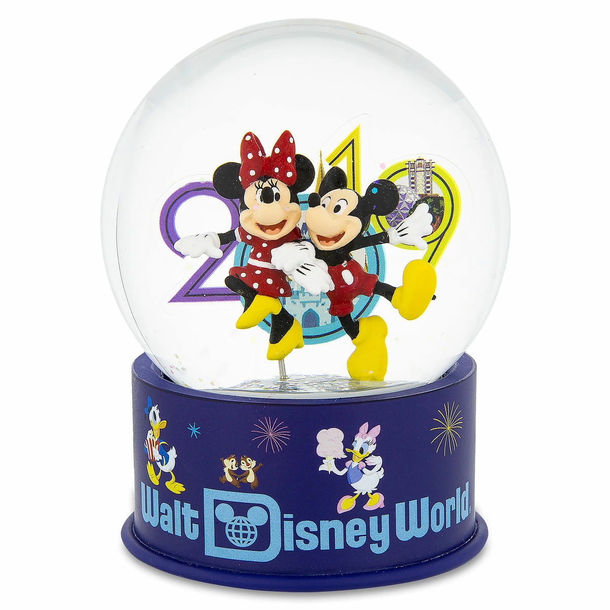 - Fully sculpted Mickey and Minnie figurines plus ”2019” logo inside miniature glass globe